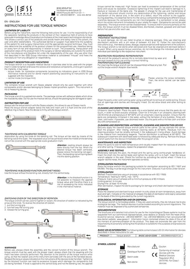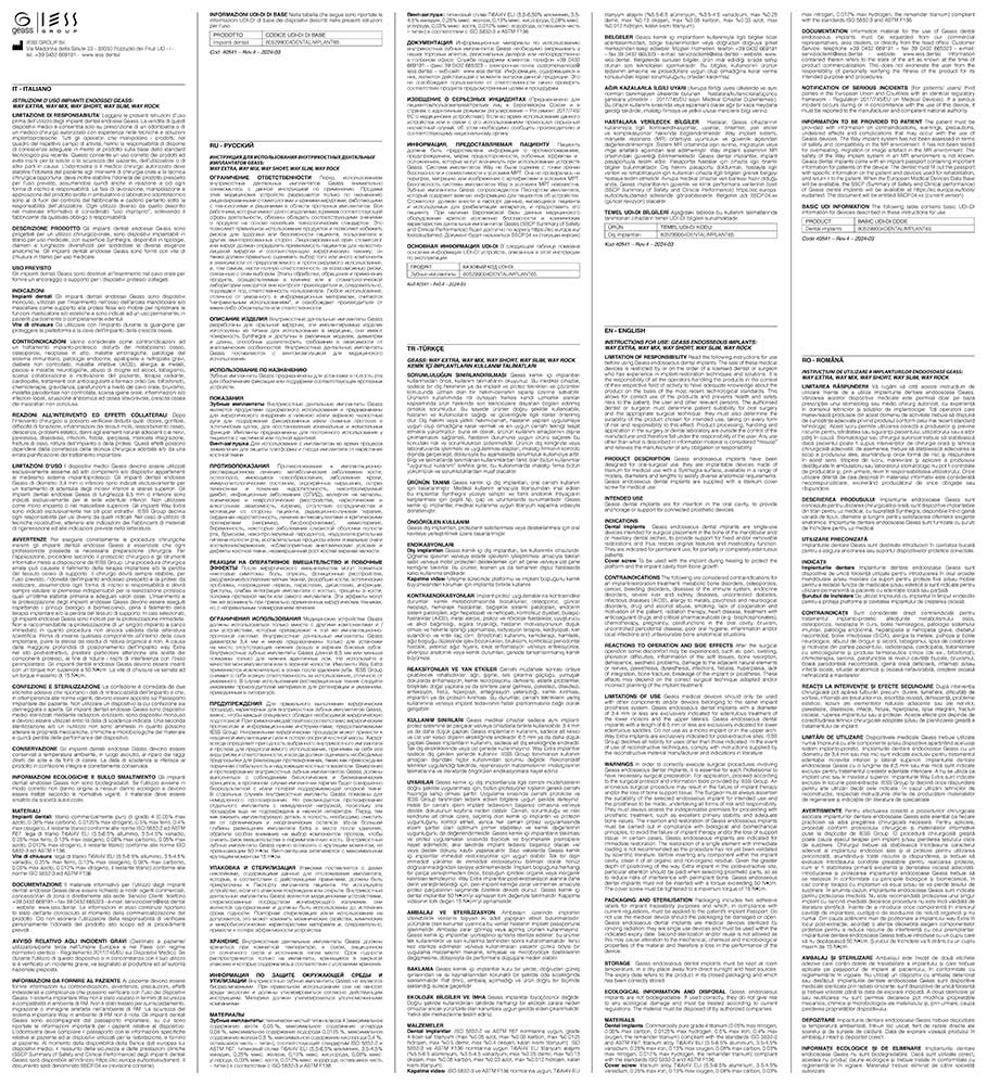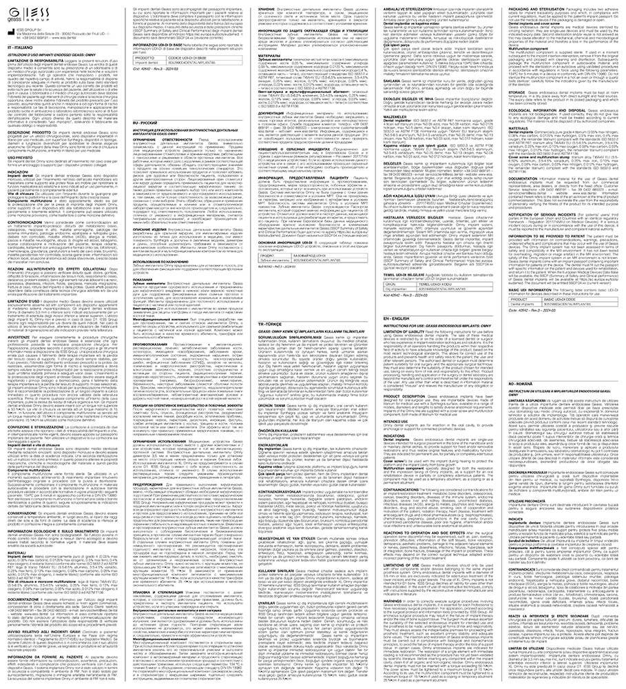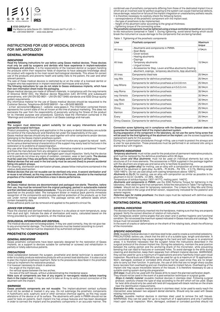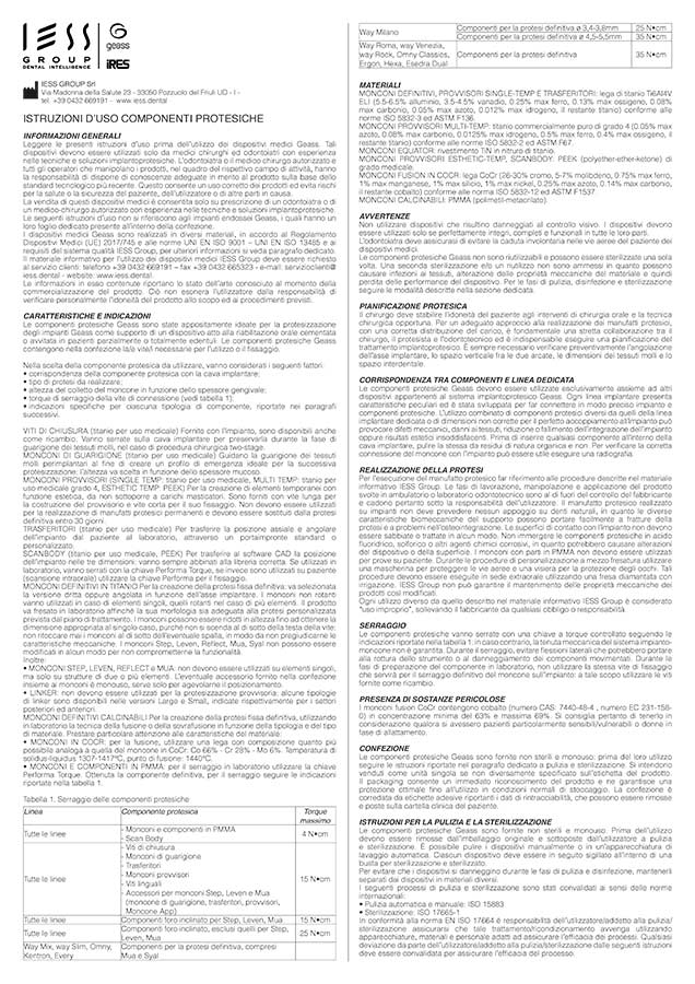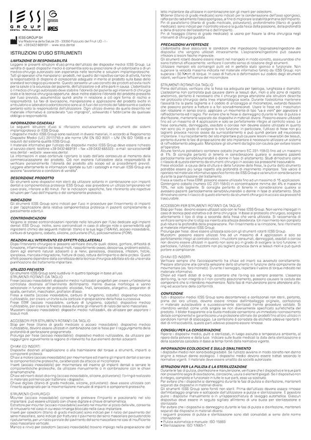 In caso di impossibilità a scaricare le IFU, contattare IESS Group al numero +390432669191 o scrivere a info@iess.dental