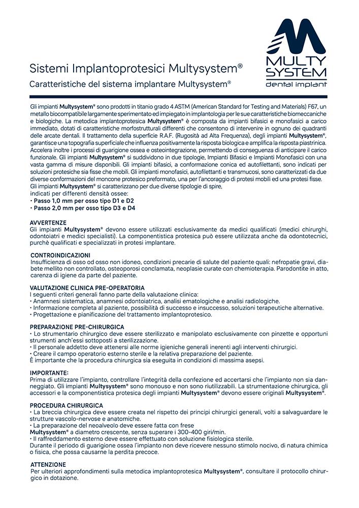 IFU - fogli di istruzione / Multysystem