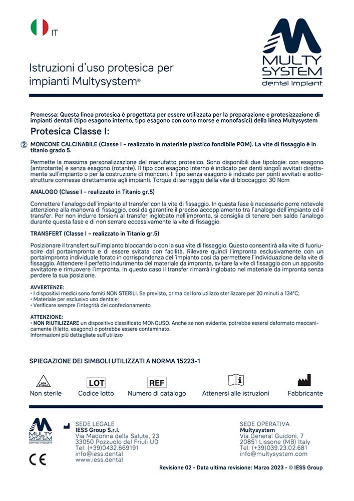 In caso di impossibilità a scaricare le IFU, contattare IESS Group al numero +390432669191 o scrivere a info@iess.dental